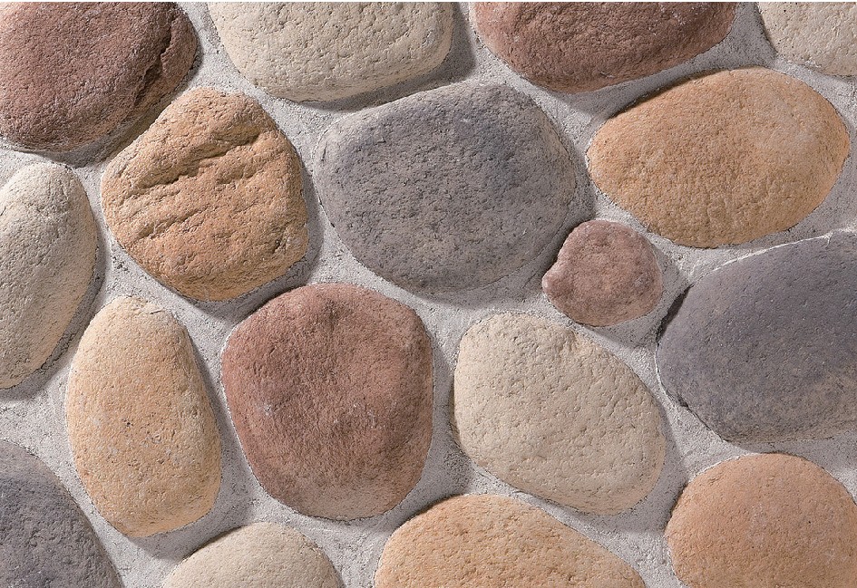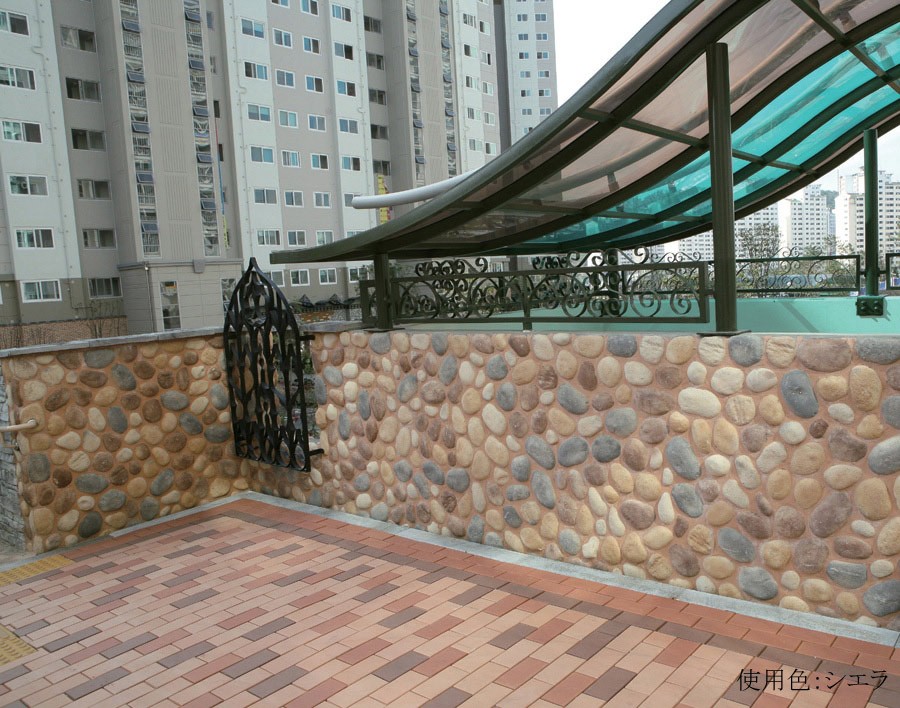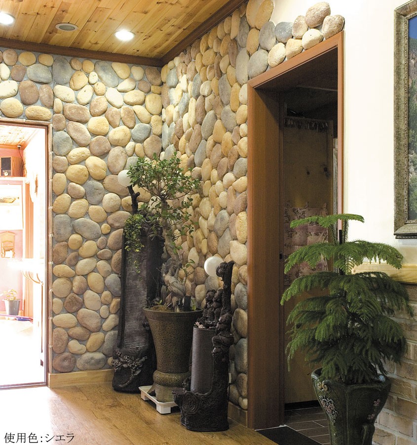 明るい洋風住宅や店舗に適した色幅を揃えた川石(リバーロック)です。