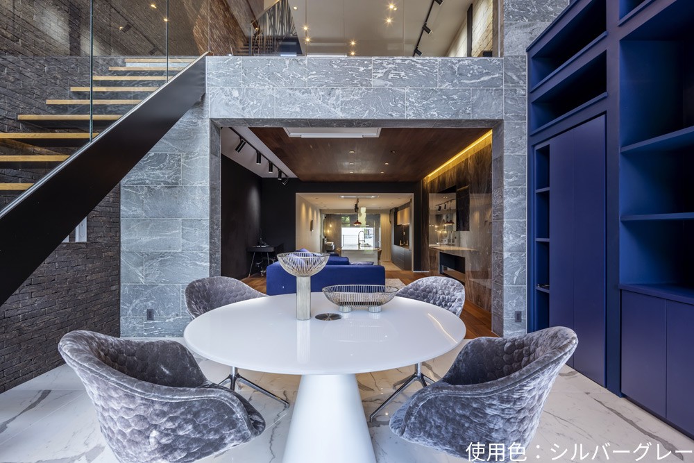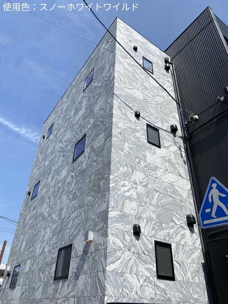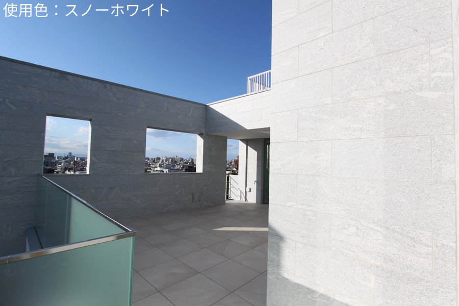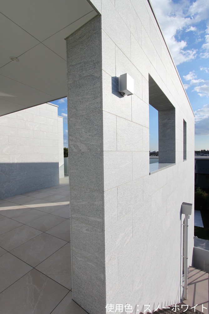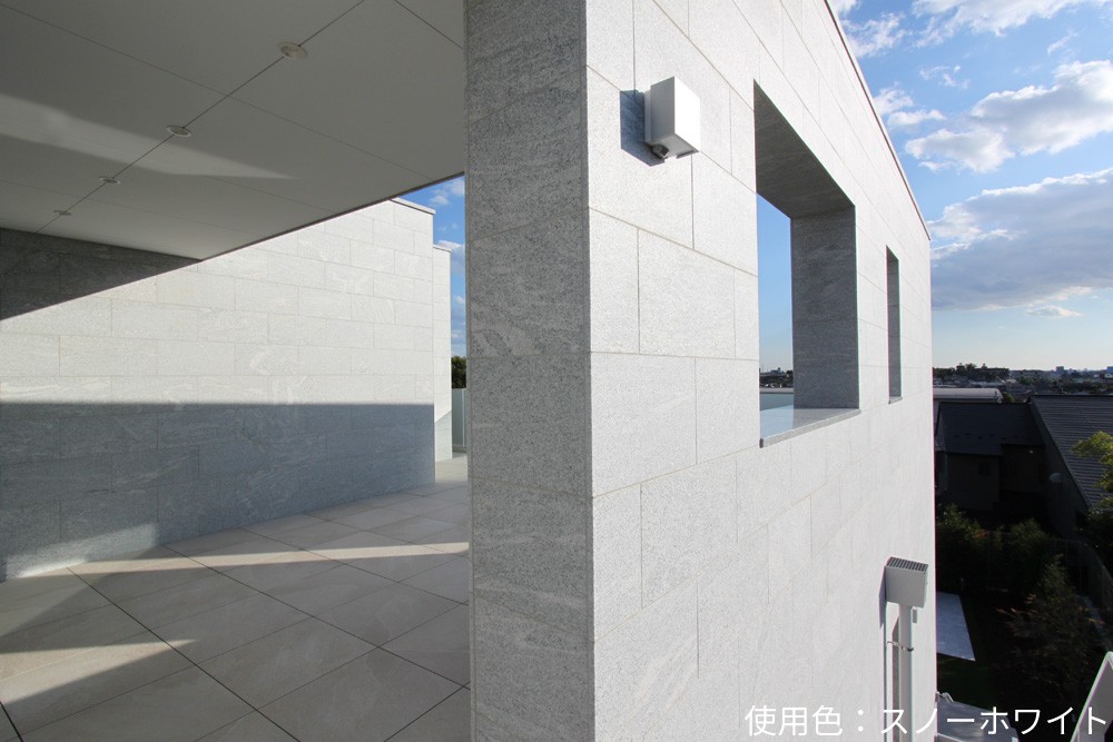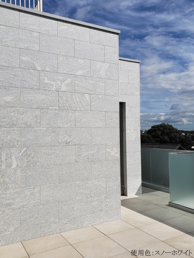 御影石の格調高い風合いを300×600の大判で魅せることにより、外観を格段にグレードアップしてくれます。
