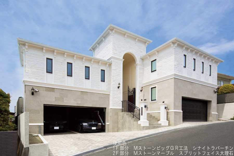 透明感のある美しい大理石が、遠くからでも非常に目を惹く外壁になります。