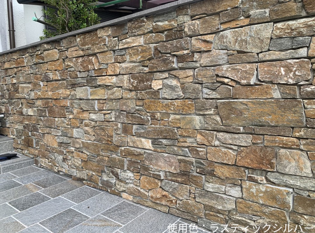 天然石を石職人の技術で薄くスライスし、軽量ながらも石積みの素朴さと石本来の自然な色合いが堪能できます。 細かなパーツ同士を接着し、パネル状になっている商品です。