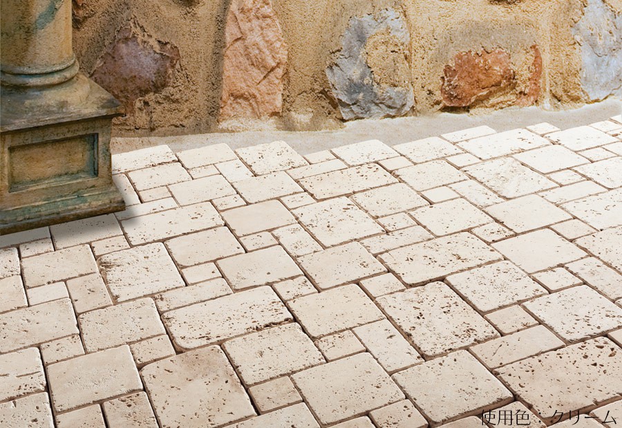 味わい深いアンティークな風合いの天然石が、ネット貼りで簡単に施工。