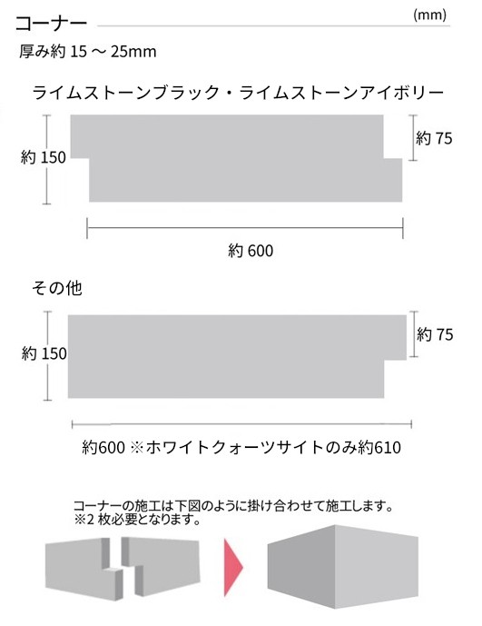 ※ライムストーンアイボリーとライムストーンブラックは、他のお色と形状が異なります。