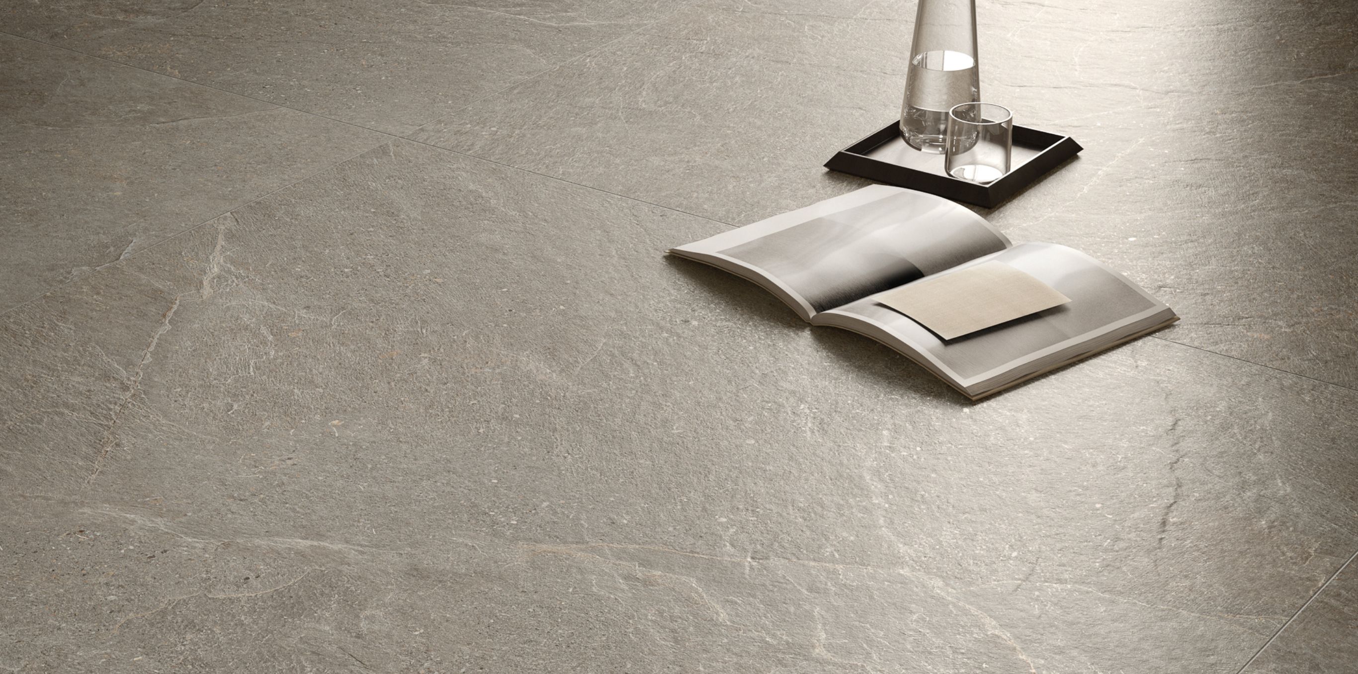イタリアの希少な大理”チェボディグレ”をモデルとし、白い斑点模様にそって凹凸やツヤの出方を変えるなど、細部までこだわったタイルです。 900角の大判タイルでこそ味わえる迫力と繊細さがあります。