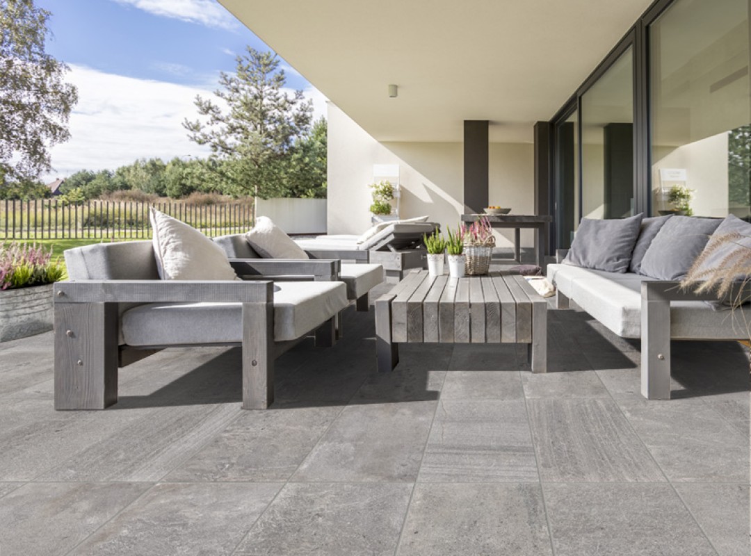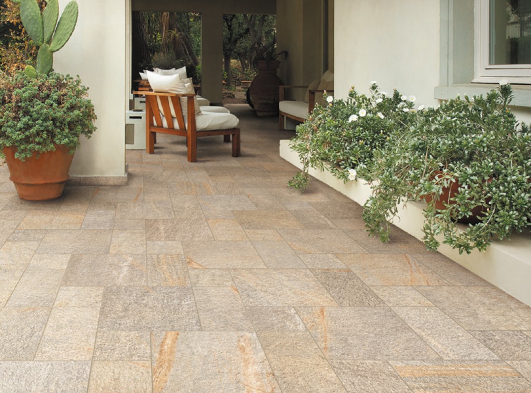 北イタリアで採掘される3種類の特徴的な石をモチーフに、ベーシックながらもオレンジの班や表面の輝きが個性的なタイルです。 19mm厚のル・ケーブヘビーと併用することで、玄関アプローチから駐車スペースまで一体感のあるデザインが可能となっております。