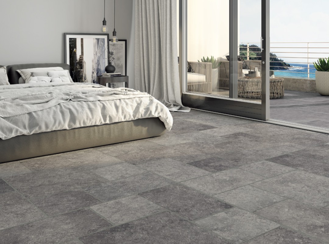 石の繊細な模様と落ち着いた深みのある色合いが魅力のマディソン。 シックで高級感あるフロアスペースを演出します。
