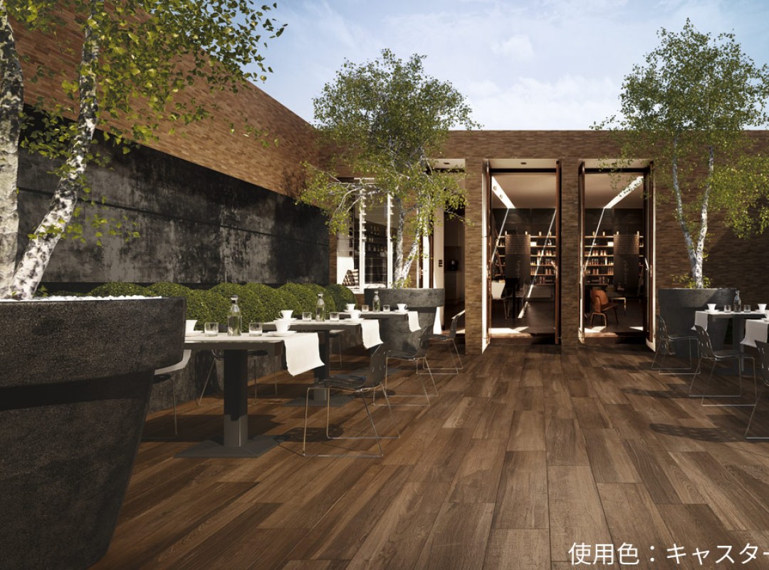 飽きのこない天然木の風合いをそのままに、磁器質タイルなのでメンテナンスフリーに。 ノンスリップタイプなので店舗などに最適です。