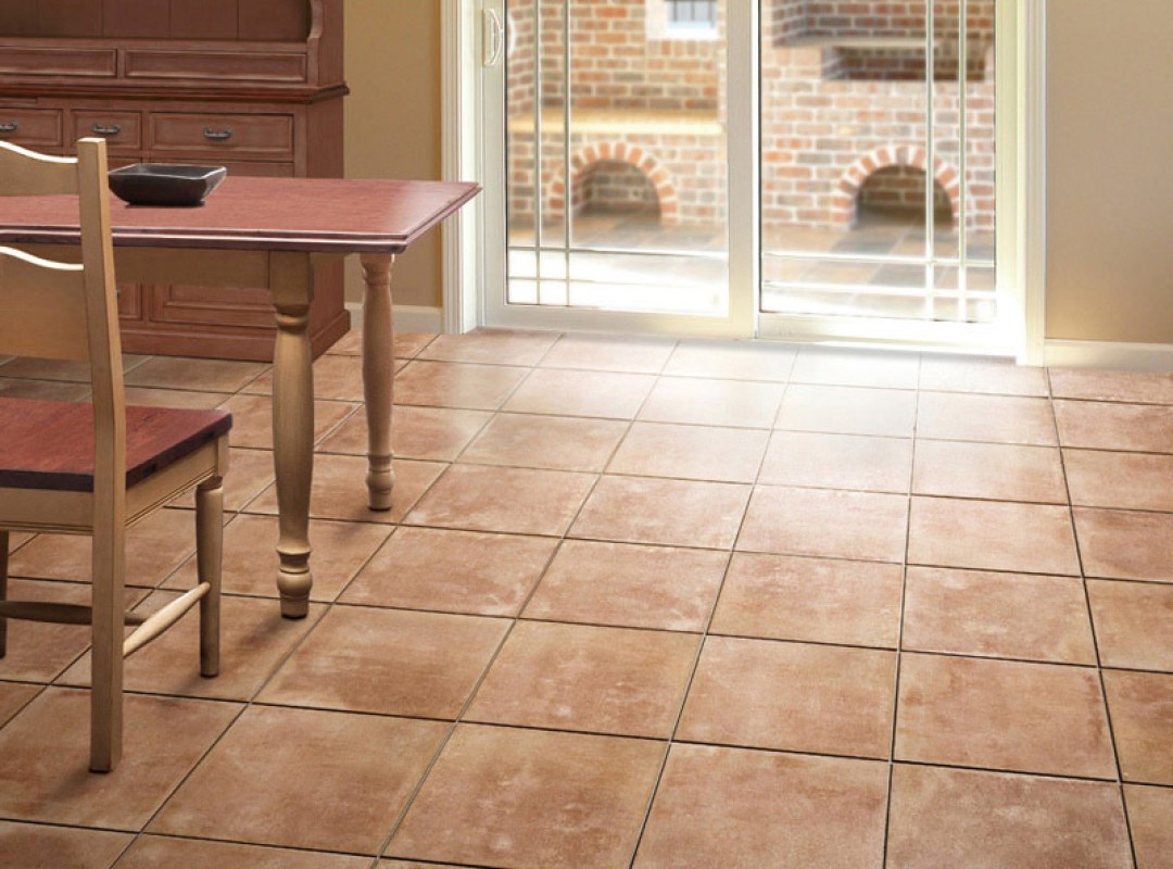 商用スペースなど様々なフロアにマッチする滑りにくく使いやすいテラコッタ調タイル。