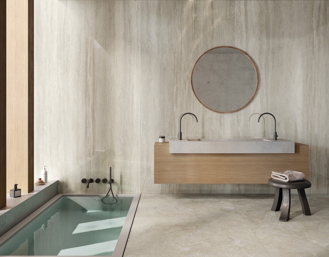 過去と現在の調和のとれたバランスが、何世紀にもわたって色彩との構成を通して、トラバーチンの洗練さを引き立てます。