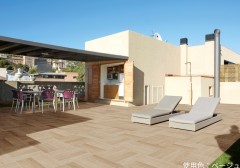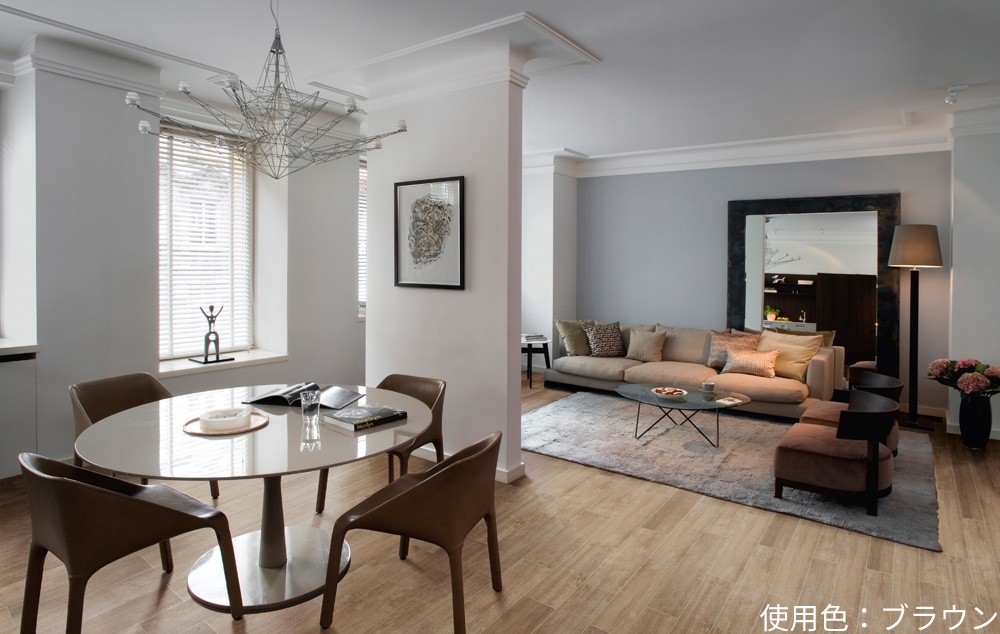 柔らかで温かみのあるカラーで、空間を邪魔しない木目調タイルです。