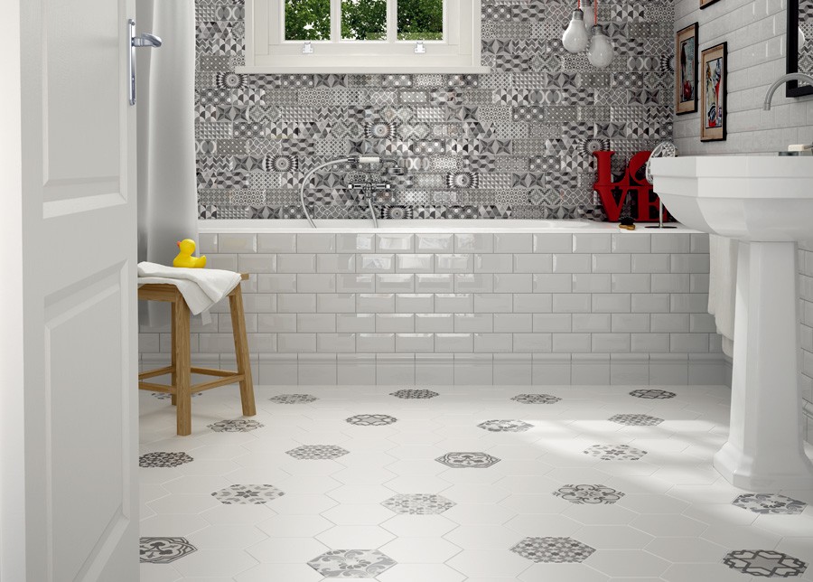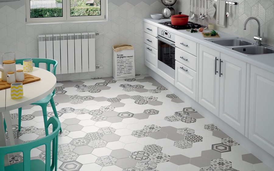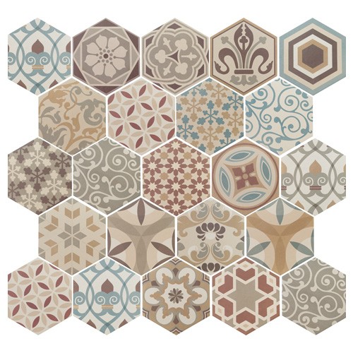 磁器質六角形デザインタイル