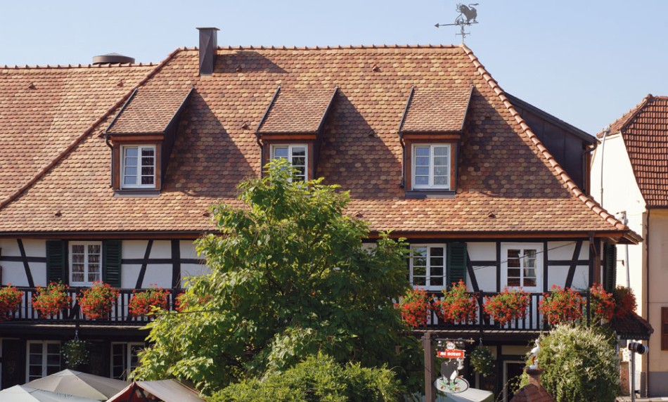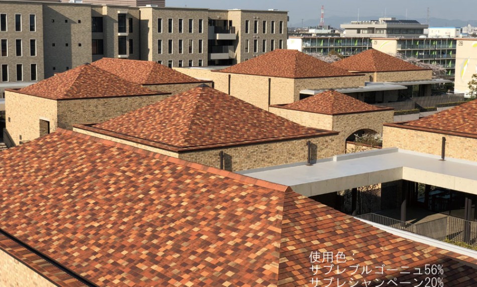 歴史ある風情を再現し、曲線が織りなす存在感。 プレートタイルのウロコ型は、建物全体に柔らかい印象を与えます。 味わい深い豊かなカラーバリエーションが意匠をより一層高めます。