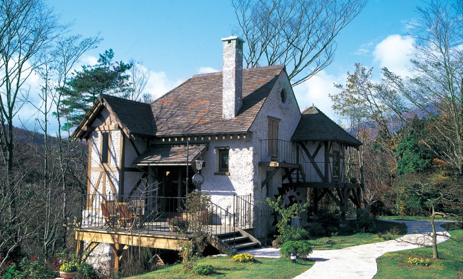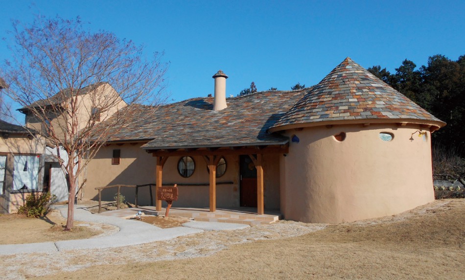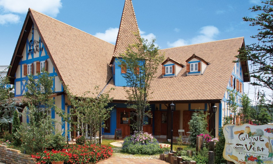 柔らかな色合いと、人目を引くウロコ形の形状が、建物の存在感を際立てます。 <受注輸入品> ■施工実績 2023年 愛知県⾧久手市にある愛・地球博記念公園(モリコロパーク)内、ジブリパークの『魔女の谷』にある、スタジオジブリ作品『ハウルの動く城』に登場する主人公ソフィーの働く「ハッター帽子店」に施工させていただきました。 「ハッター帽子店」 使用色:セントジーン