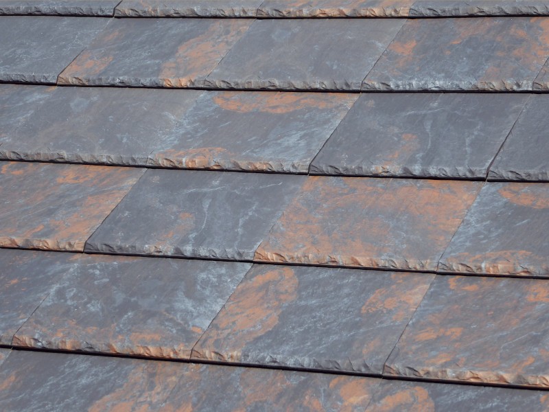 洗練されたデザインと優れた耐久性を持つ屋根材。 通常、天然スレートの施工は三枚重ねで行われ、手間やコストがかかります。 マルシカでは、天然スレート一枚一枚に金属製水切りを取り付け、天然スレートに平板瓦の施工性を持たせました。 それにより、プライスの大幅ダウンと工期の短縮を実現しました。