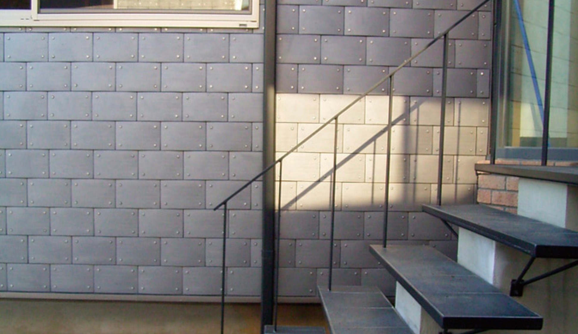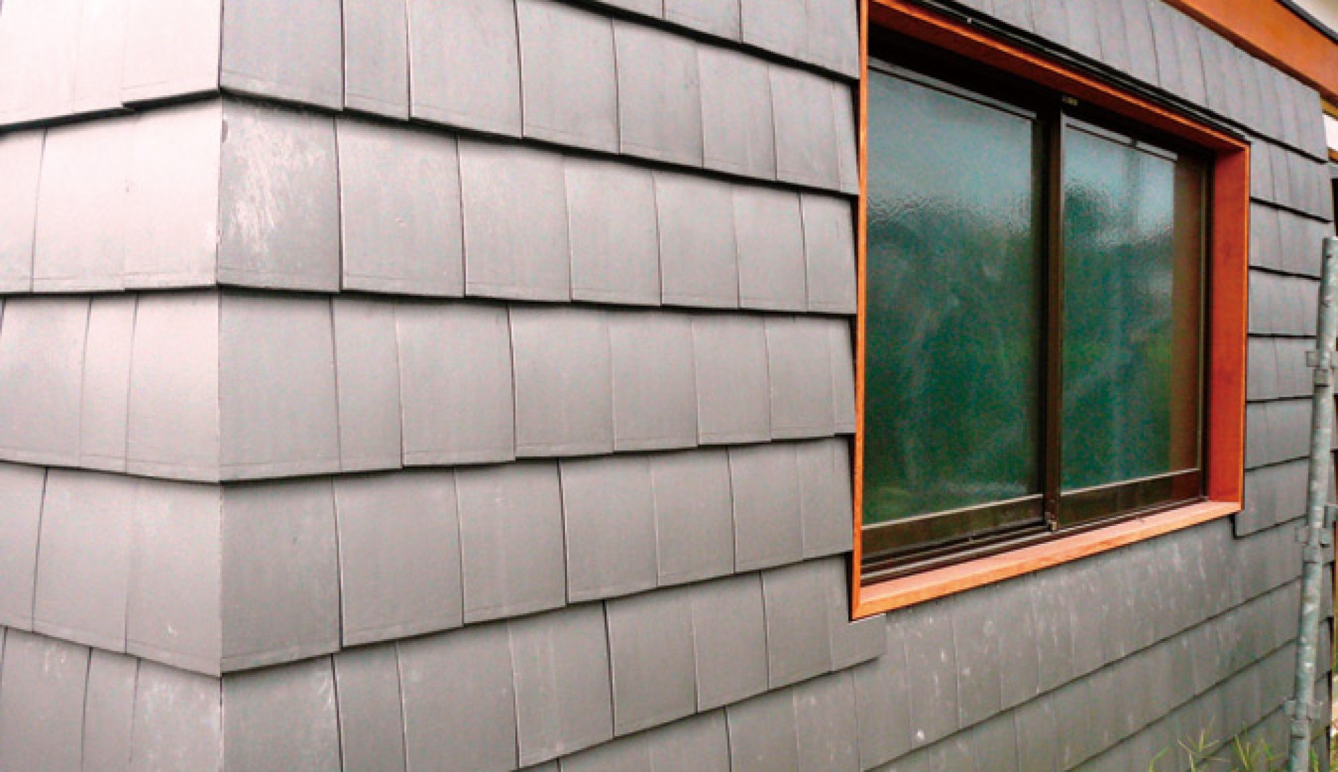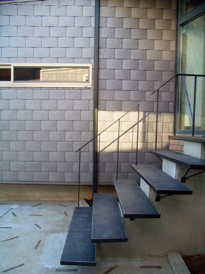 単純な形が設計者のアイデアを引き出すのに貢献しているのだろうが、下地での防水処理が必要。