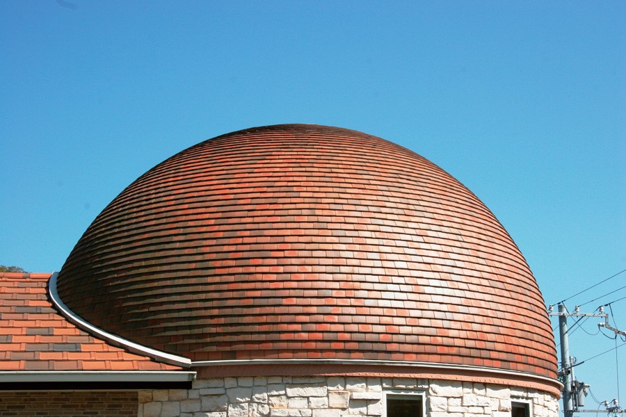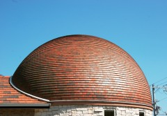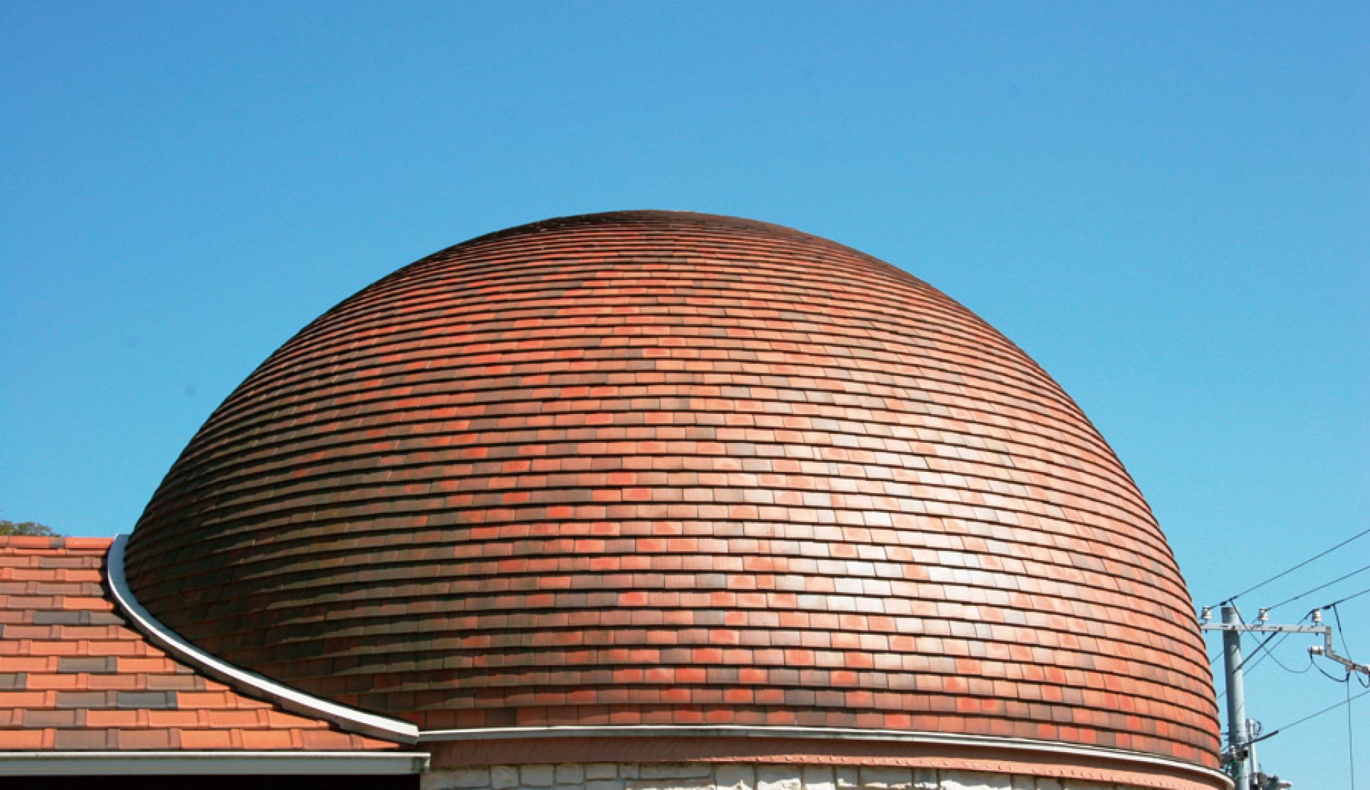 1ピースが小さいシンプルな形状ゆえ、緩い傾斜や曲線は1枚単位で吸収して施工することが可能であり、円弧形状や台形、球面などの屋根、壁面や塀の天端でも採用されている。