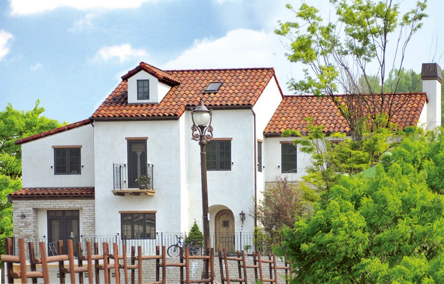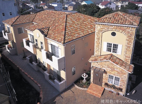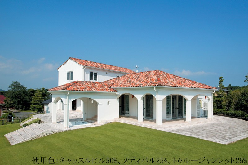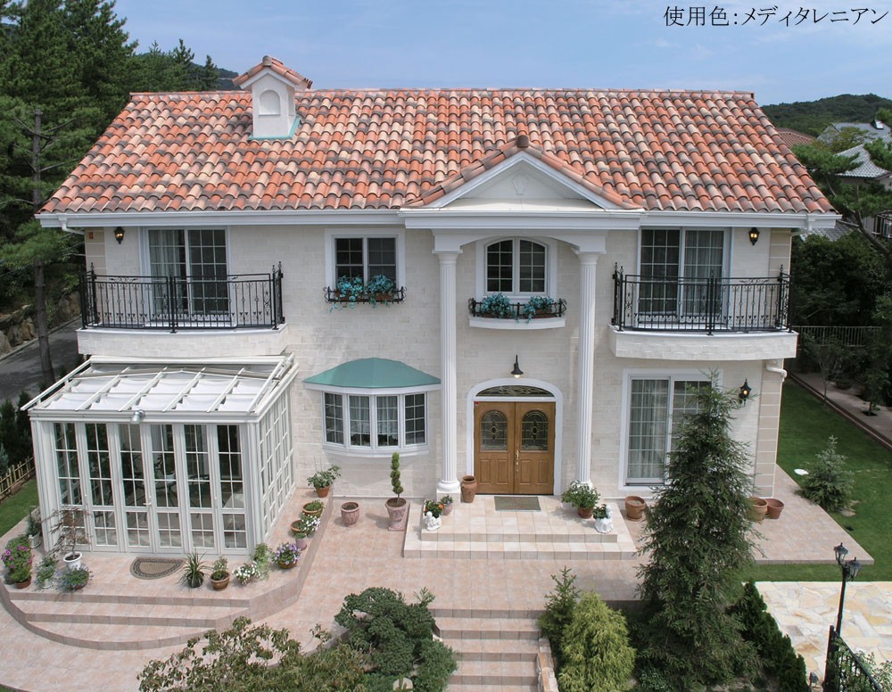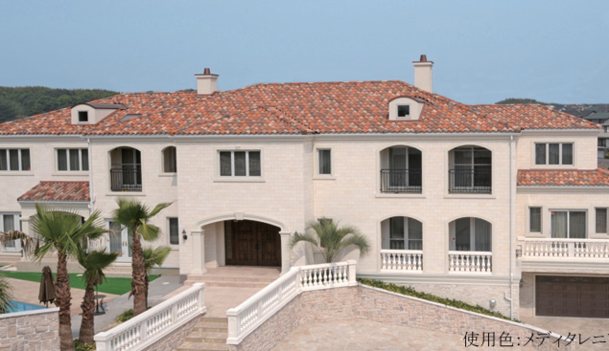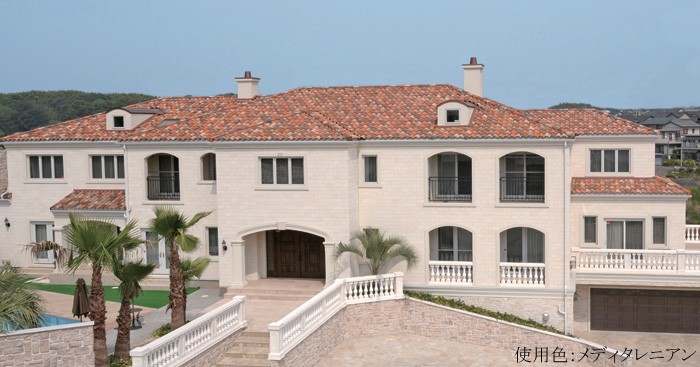 ハンドメイドを思わせる質感と古き良き伝統を受け継ぐアースカラーの色調が、欧風建築のディテールを見事に再現します。また、ゆるやかにうねりを描くその流麗なフォルムは、心弾むような南欧のイメージを描き出し、優雅で個性的な建築物を創り出します。