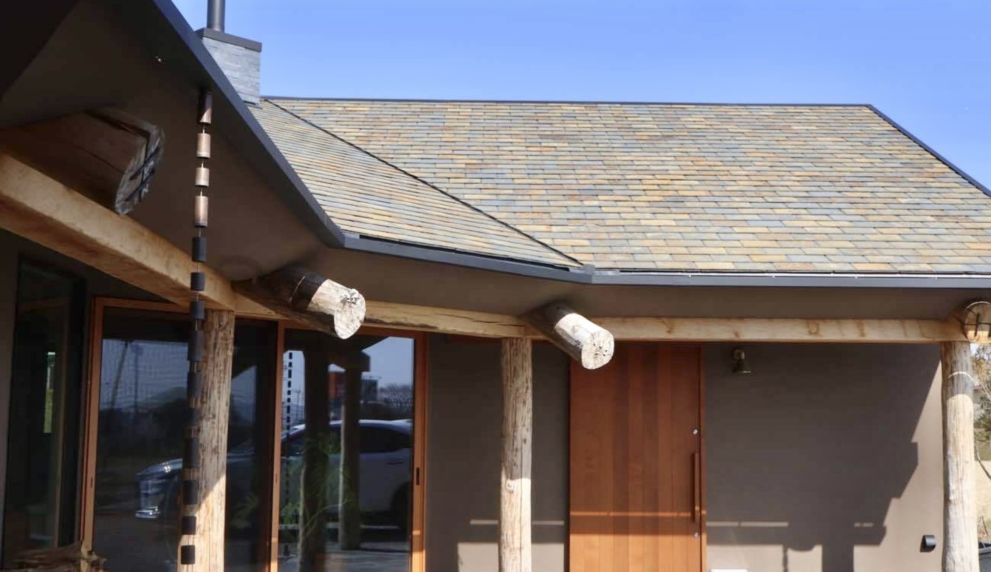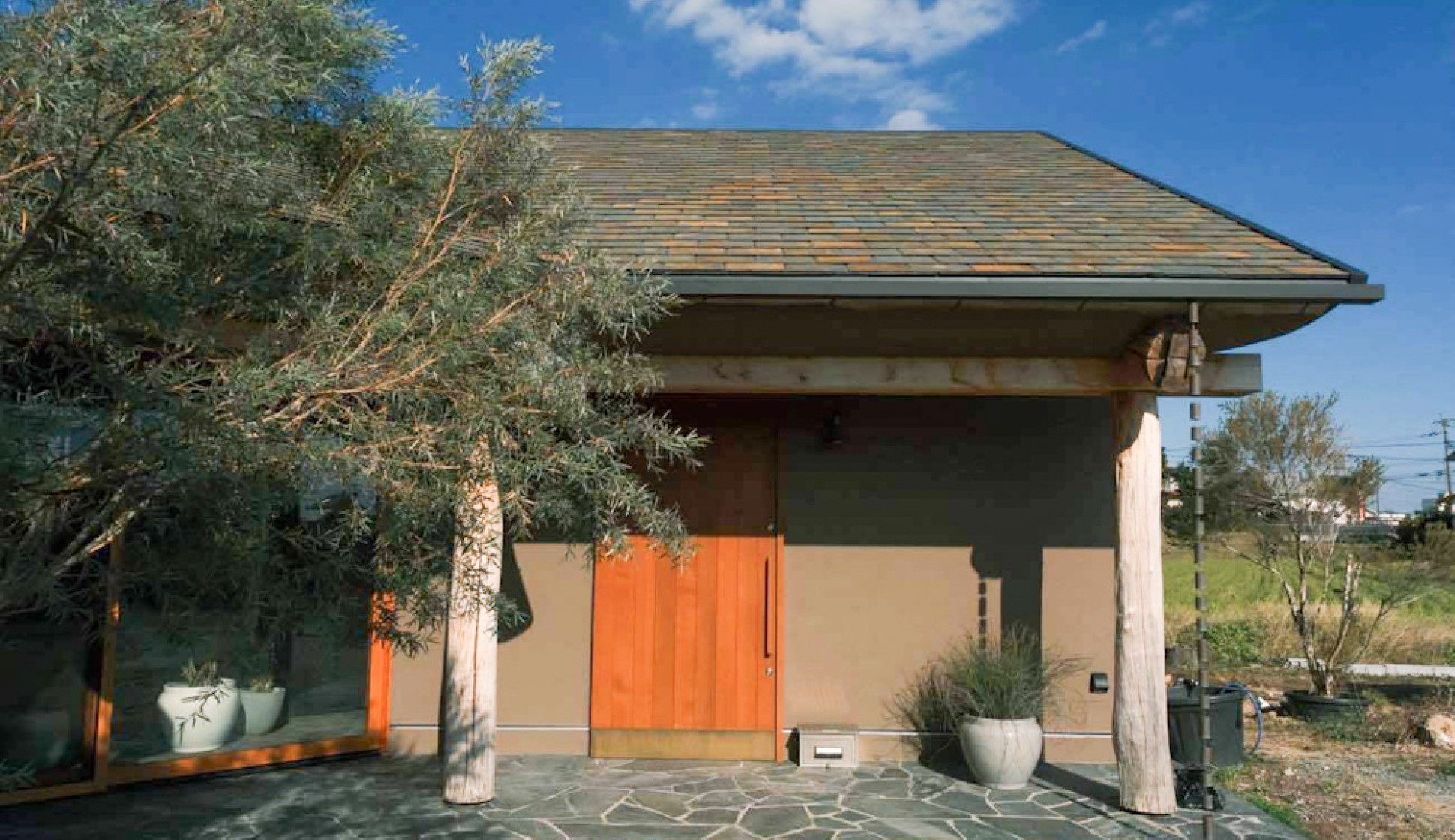 自然なバラツキのマルチカラーなニューイエローの色味が、外壁の色、木材の色と絶妙にマッチしています!
